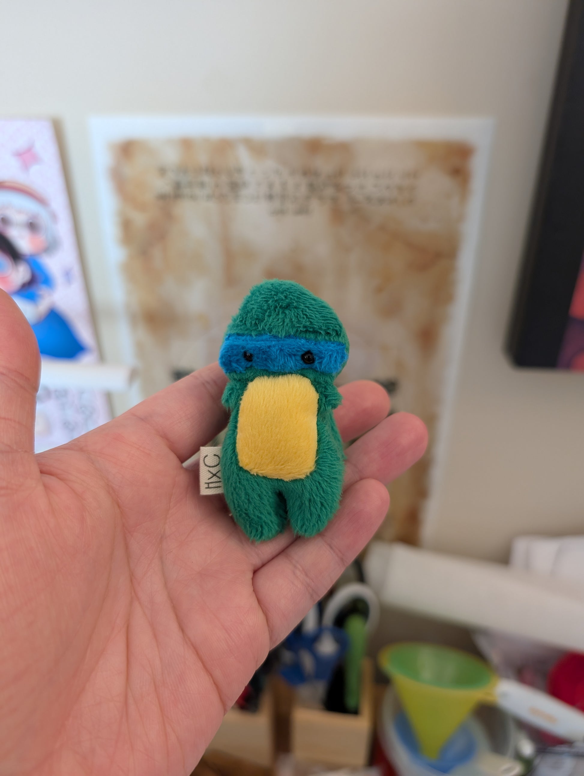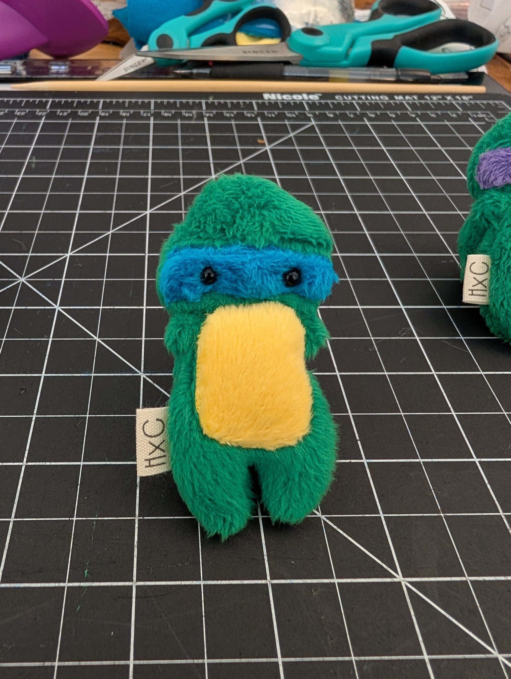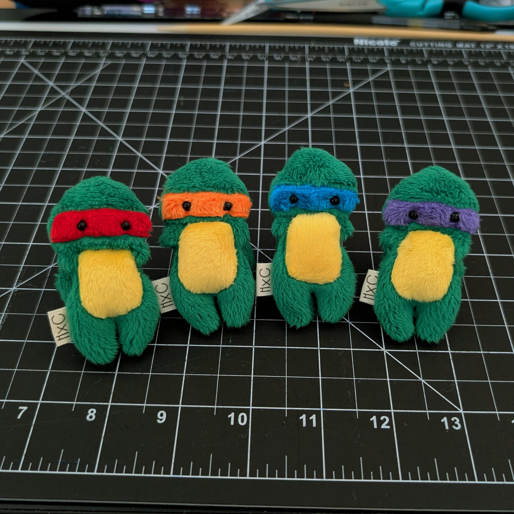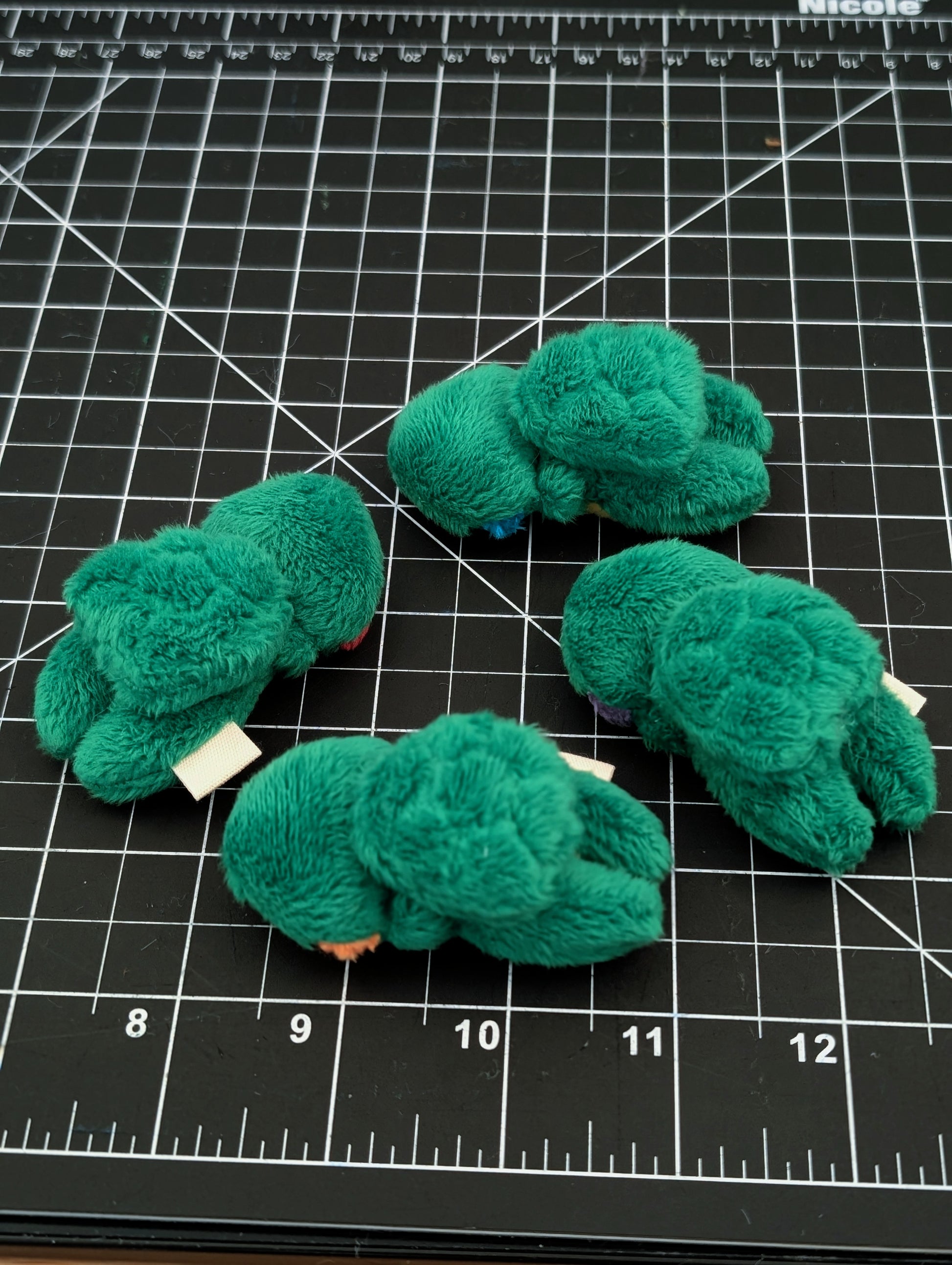 Charm size, 3in tall, stuffed with ultra plush polyfil and weighted with glass. The shell is stuffed with polyfil and sewn onto the back of each Charm.