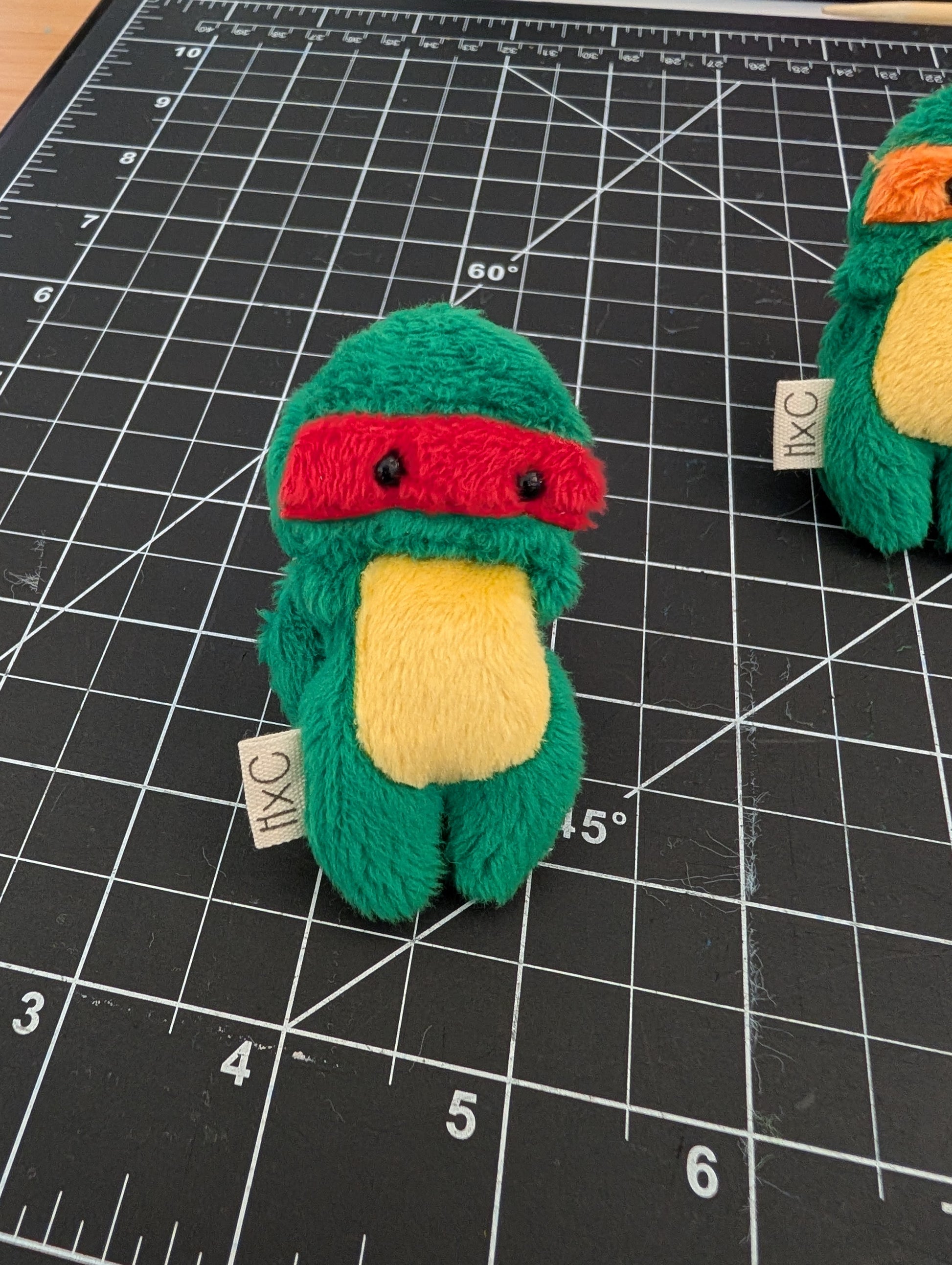 Charm size, 3in tall, stuffed with ultra plush polyfil and weighted with glass. The shell is stuffed with polyfil and sewn onto the back of each Charm.